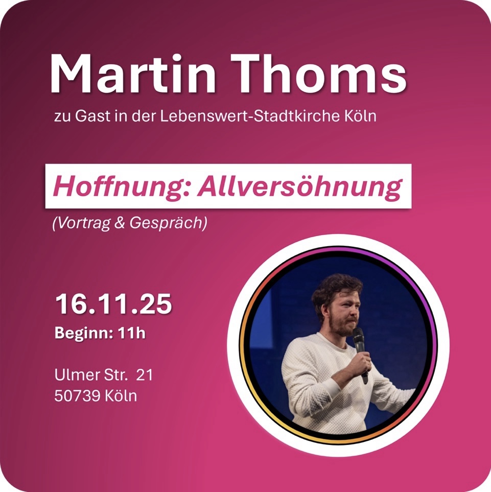 Am 16.11.2025 haben wir als Teil unseres Gottesdienstes ab 11 Uhr Theologe Martin Thoms zu Gast. Alle sind Herzlich dazu eingeladen.